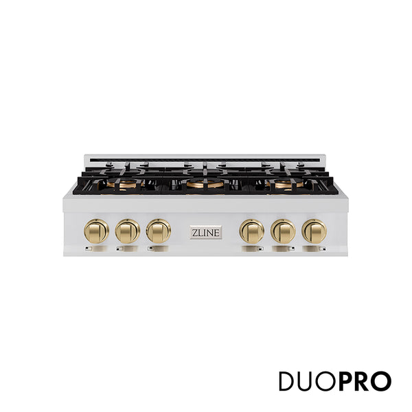 - DuoPro™ Cooktop Design - Transform your kitchen into a home chef’s dream with ZLINE DuoPro™, which delivers up to 130,000 BTUs of power, double the performance of most standard 36 in. gas cooktops