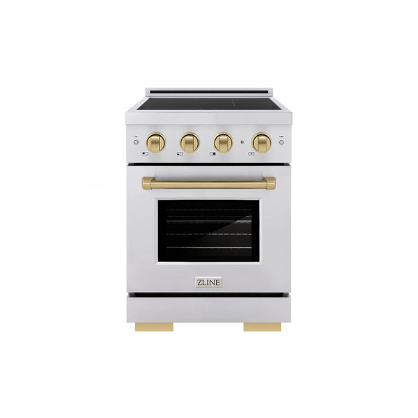 Luxury isn’t meant to be left desired—it’s meant to be attainable. The ZLINE Autograph Edition 24 in. 3.2 cu. ft. Paramount Induction Range with 3 Element Cooktop and Electric Convection Oven in Stainless Steel with Champagne Bronze Accents (SINRZ-24-CB) combines the versatility of a nanotechnology-reinforced anti-scratch cooktop with anti-glare coating, an electric convection oven with digital thermostat technology, and a Horizon oven door window design allowing you to master every meal. With a modern, timeless style and refined functionality, ZLINE Paramount Induction Ranges are masterfully crafted to deliver an elevated culinary experience.