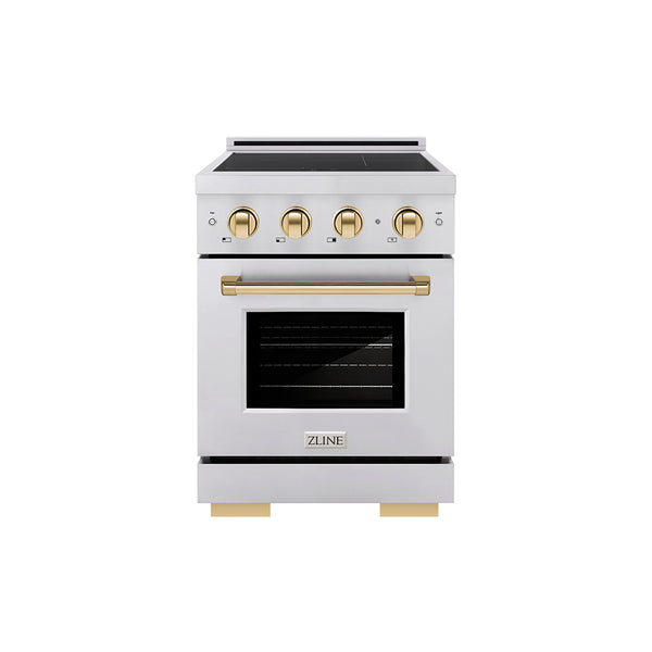 ZLINE Autograph Edition 24 in. 3.2 cu. ft. Paramount Induction Range with 3 Element Cooktop and Electric Convection Oven in Stainless Steel with Polished Gold Accents (SINRZ-24-G)