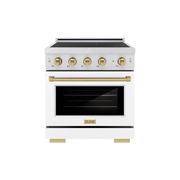 ZLINE Autograph Edition 30 in. 4.2 cu. ft. Paramount Induction Range with 4 Element Cooktop and Electric Convection Oven in Stainless Steel with White Matte Door and Champagne Bronze Accents (SINRZ-WM-30-CB)