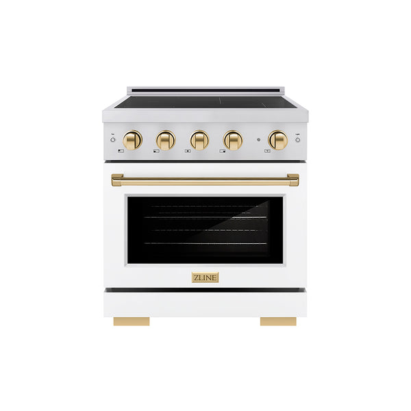 ZLINE Autograph Edition 30 in. 4.2 cu. ft. Paramount Induction Range with 4 Element Cooktop and Electric Convection Oven in Stainless Steel with White Matte Door and Polished Gold Accents (SINRZ-WM-30-G)