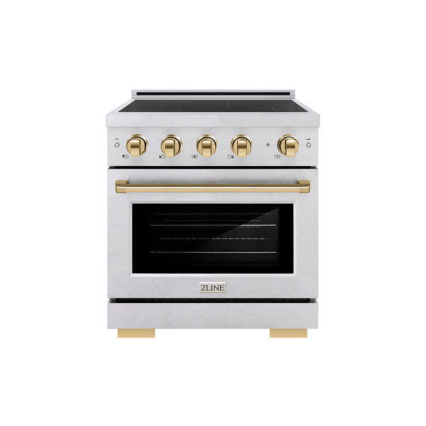 ZLINE Autograph Edition 30 in. 4.2 cu. ft. Paramount Induction Range with 4 Element Cooktop and Electric Convection Oven in Satin Stainless Steel with Polished Gold Accents (SINRSZ-30-G)