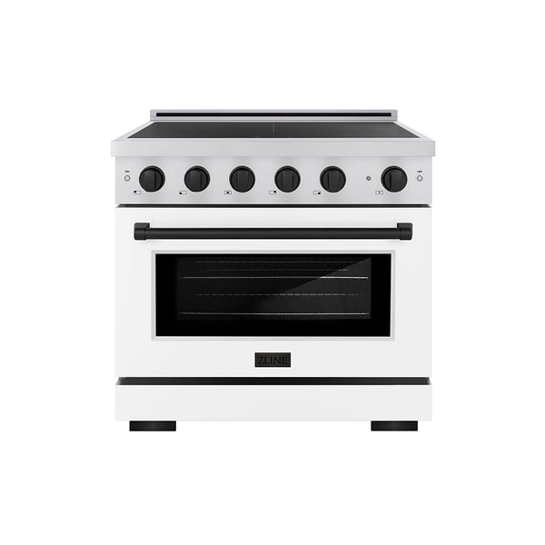 ZLINE Autograph Edition 36 in. 5.2 cu. ft. Paramount Induction Range with 5 Element Cooktop and Electric Convection Oven in Stainless Steel with White Matte Door and Matte Black Accents (SINRZ-WM-36-MB)