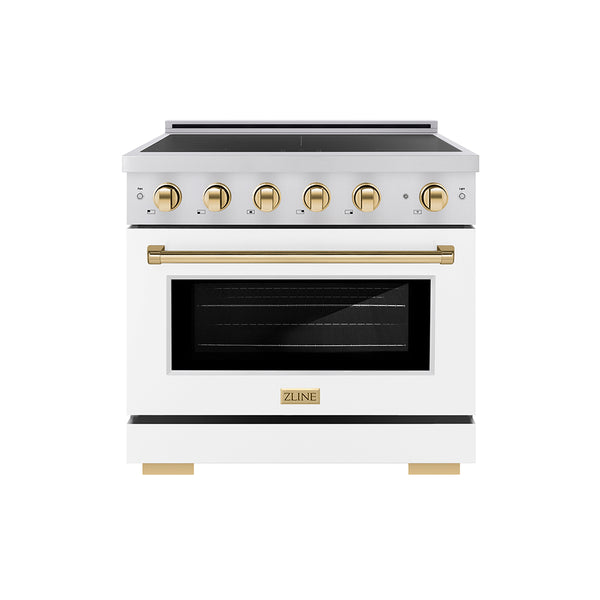 Luxury isn’t meant to be left desired—it’s meant to be attainable. The ZLINE Autograph Edition 36 in. 5.2 cu. ft. Paramount Induction Range with 5 Element Cooktop and Electric Convection Oven in Stainless Steel with White Matte Door and Polished Gold Accents (SINRZ-WM-36-G) combines the versatility of a nanotechnology-reinforced anti-scratch cooktop with anti-glare coating, an electric convection oven with digital thermostat technology, and a Horizon oven door window design allowing you to master every meal. With a modern, timeless style and refined functionality, ZLINE Paramount Induction Ranges are masterfully crafted to deliver an elevated culinary experience.