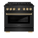 Luxury isn’t meant to be desired - it’s meant to be attainable. The ZLINE Autograph Edition 36 in. 5.2 cu. ft. Paramount Gas Range with 6 Burner Cooktop and Convection Gas Oven in Black Stainless Steel and Polished Gold Accents (SGRBZ-36-G) features a versatile gas cooktop with 6 Italian-made auto-reignition burners, a high-performing gas convection oven, enhanced cast iron grates, a Horizon oven door window design, and elegant polished gold knobs and handle allowing you to master every meal. With a modern, timeless style and refined functionality, ZLINE Paramount Gas Ranges are masterfully crafted to deliver an elevated culinary experience.