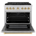 Luxury isn’t meant to be desired - it’s meant to be attainable. The ZLINE Autograph Edition 36 in. 5.2 cu. ft. Paramount Gas Range with 6 Burner Cooktop and Convection Gas Oven in Stainless Steel and Polished Gold Accents (SGRZ-36-G) features a versatile gas cooktop with 6 Italian-made auto-reignition burners, a high-performing gas convection oven, enhanced cast iron grates, a Horizon oven door window design, and elegant polished gold knobs and handle allowing you to master every meal. With a modern, timeless style and refined functionality, ZLINE Paramount Gas Ranges are masterfully crafted to deliver an elevated culinary experience.