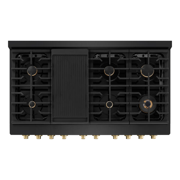 ZLINE Autograph Edition 48 in. 6.7 cu. ft. Paramount Double Oven Gas Range with 8 Burner Cooktop in Black Stainless Steel and Champagne Bronze Accents (SGRBZ-48-CB)
