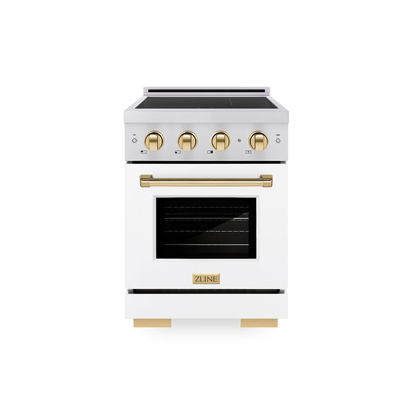 Luxury isn’t meant to be left desired—it’s meant to be attainable. The ZLINE Autograph Edition 24 in. 3.2 cu. ft. Paramount Induction Range with 3 Element Cooktop and Electric Convection Oven in Stainless Steel with White Matte Door and Polished Gold Accents (SINRZ-WM-24-G) combines the versatility of a nanotechnology-reinforced anti-scratch cooktop with anti-glare coating, an electric convection oven with digital thermostat technology, and a Horizon oven door window design allowing you to master every meal. With a modern, timeless style and refined functionality, ZLINE Paramount Induction Ranges are masterfully crafted to deliver an elevated culinary experience.