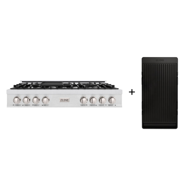 Luxury isn’t meant to be left desired—it’s meant to be attainable. The ZLINE 48 in. Classic Gas Rangetop with 8 Burners and Porcelain Cooktop in Satin Stainless Steel with Griddle (RTS-GR-48) features 8 Italian-made auto-reignition burners, a hand-crafted porcelain cooktop, and enhanced cast iron grates allowing you to master every meal. With a modern, timeless style and refined functionality, ZLINE Classic Gas Rangetops are masterfully crafted to deliver an elevated culinary experience.