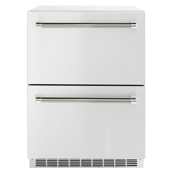 Luxury isn’t meant to be left desired—it’s meant to be attainable. The ZLINE Autograph Edition 24 in. Touchstone 168 Can Outdoor-Rated Dual Refrigerator Drawer with Stainless Steel Doors and Polished Nickel Helix Handles (RDSOZ-ST-24-KPN) features state-of-the-art cooling technology, dual smooth glide soft-closing drawers, and an expansive interior capable of holding multiple beverages. Designed with a fully wrapped, anti-sweat stainless steel exterior and durable black stainless steel doors perfect for indoor or outdoor installation, ZLINE Autograph Edition Touchstone Refrigerator Drawers are masterfully crafted to let you host parties of any size for any occasion.